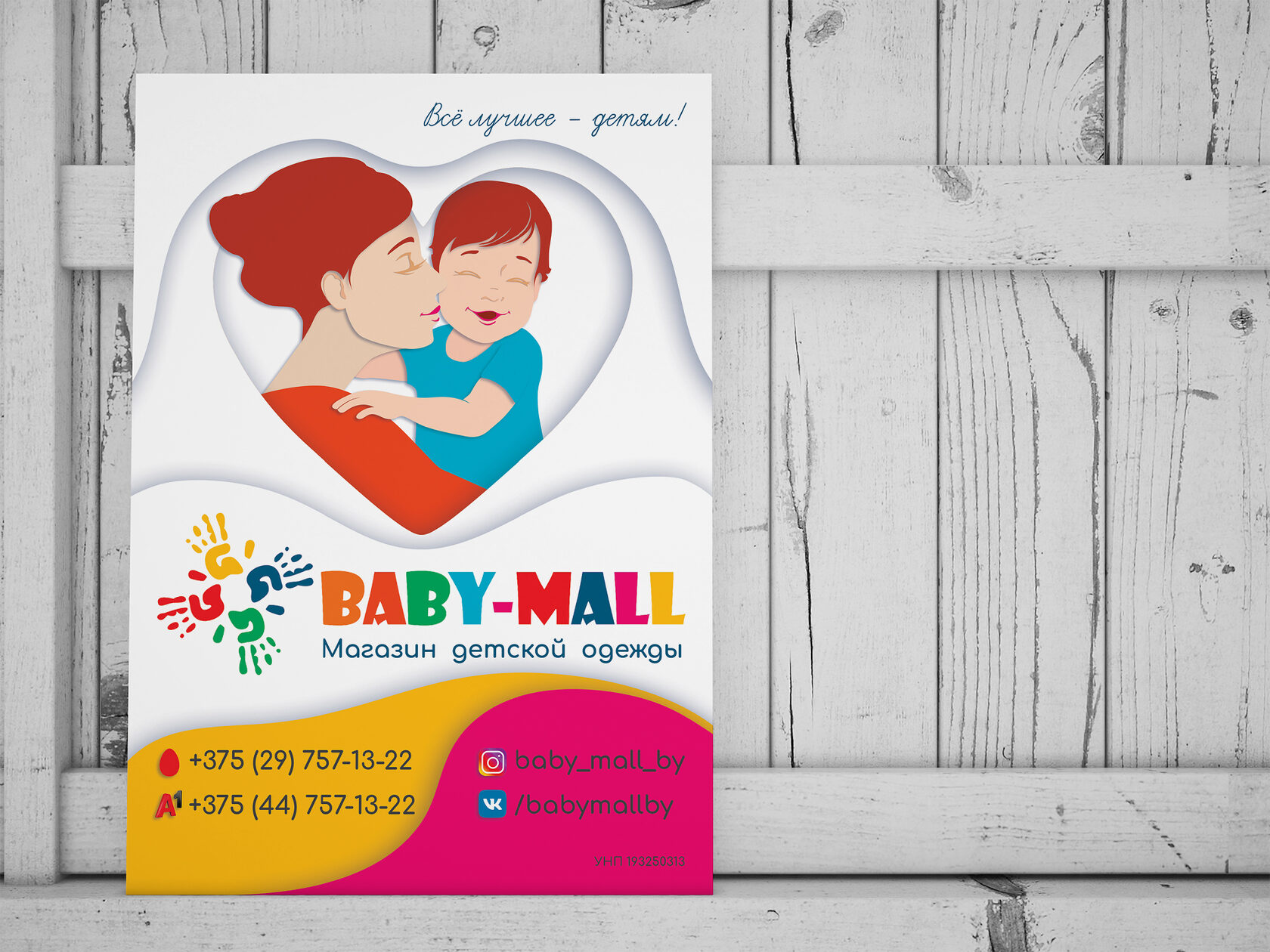 Рекламный плакат А4 для интернет-магазина детской одежды.